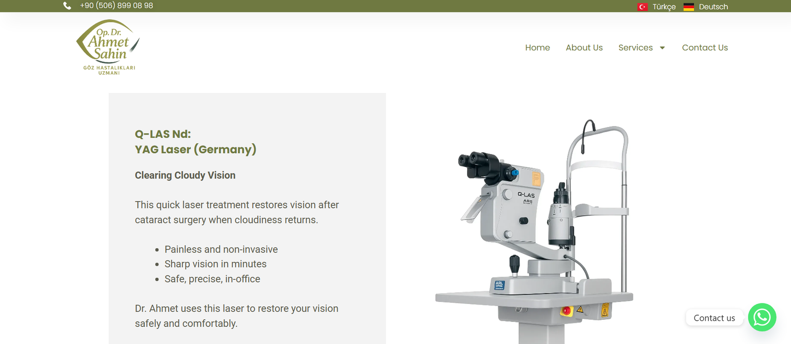 Op. Dr. Ahmet Şahin için Pure Vision Clinic tasarımı kullanılarak modern, mobil uyumlu ve SEO odaklı bir web sitesi geliştirildi. Çalışmalar, sağlık turizmi stratejilerini destekleyecek şekilde kurgulandı.