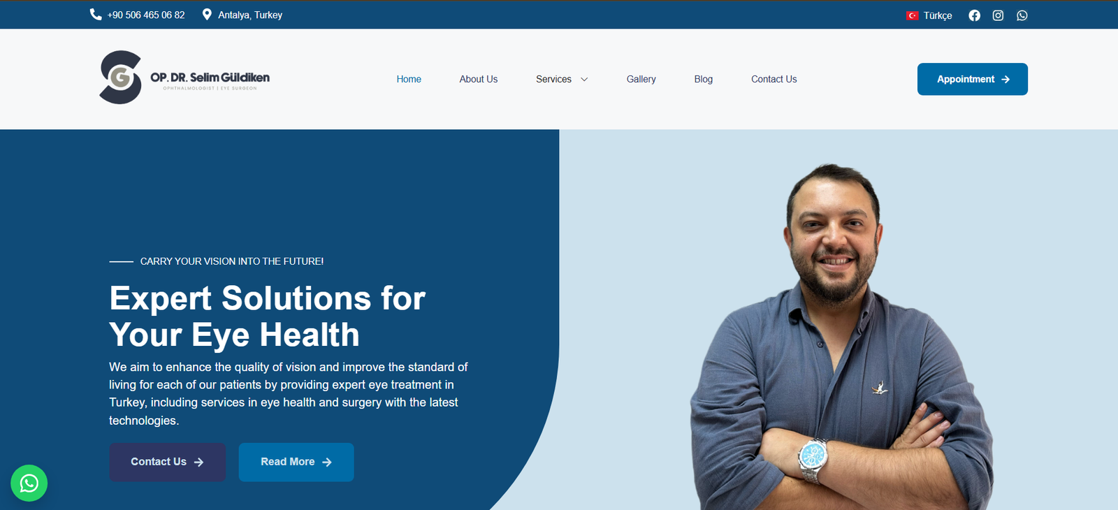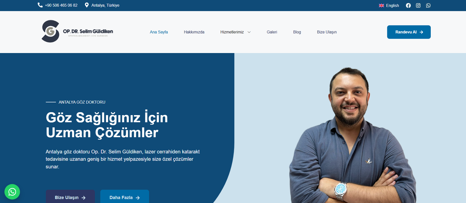 Dr. Selim Güldiken için modern, kullanıcı dostu ve mobil uyumlu bir web sitesi geliştirdik. Siteyi Türkçe ve İngilizce olmak üzere iki dilde kurguladık ve SEO odaklı içeriklerle destekledik. Ayrıca Google Ads kampanyalarını yönettik, Google İşletme Profili’ni optimize ederek yerel görünürlüğü artırdık. Sağlık turizmi alanında uluslararası hastalara ulaşmak için çift dilde blog yazıları üreterek hem güvenilirliği hem de görünürlüğü güçlendirdik.